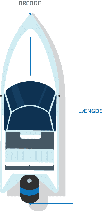 Udfyld formularen med information om din båd og få din pris med det samme. Båden måles på det bredeste og det længste punkt, som er illustreret – inkl. søgelænder, badeplatform, mast, anker eller lignende.
